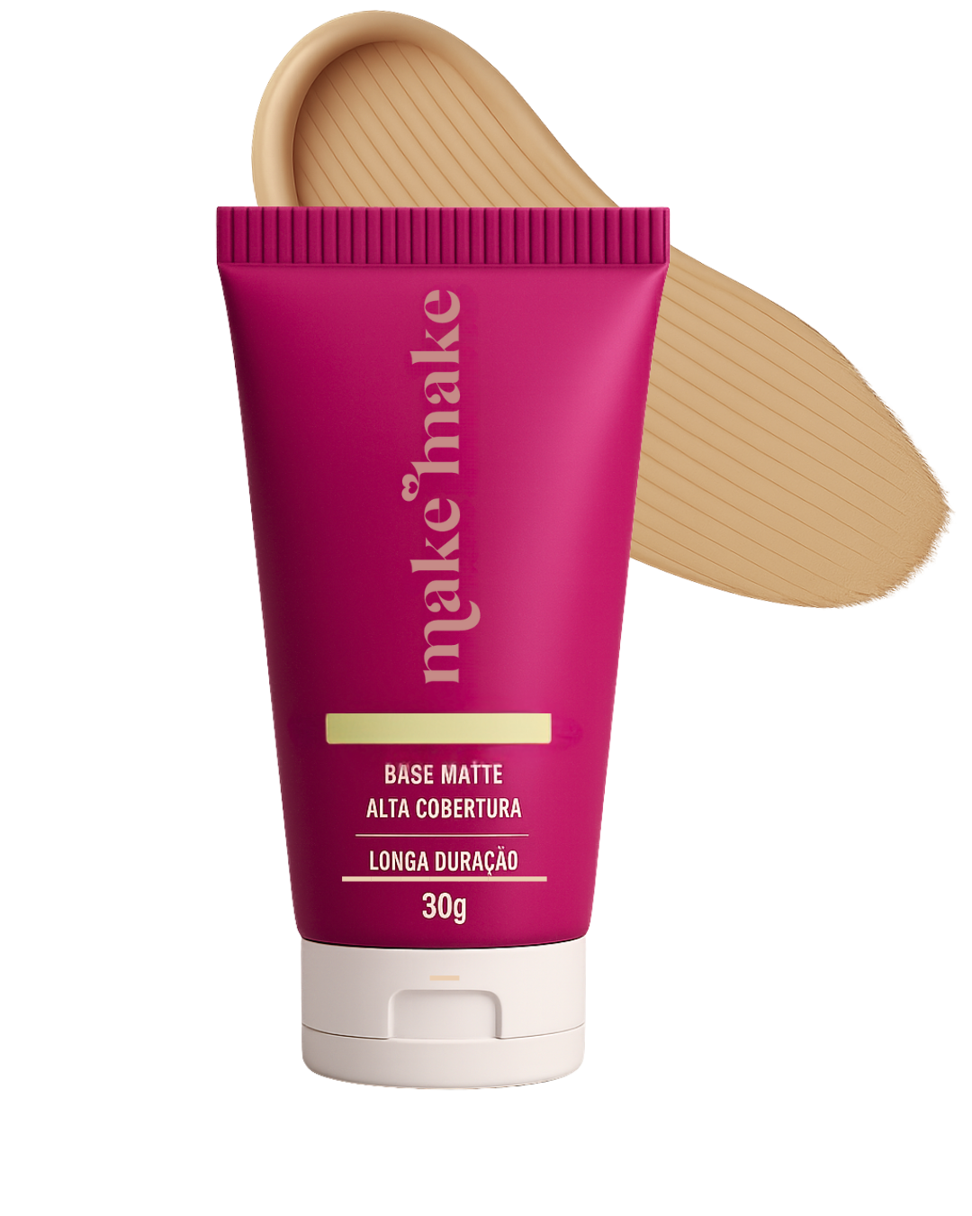 A Base Líquida da MakeMake entrega alta cobertura com efeito matte, cobrindo imperfeições com um acabamento natural e uniforme.