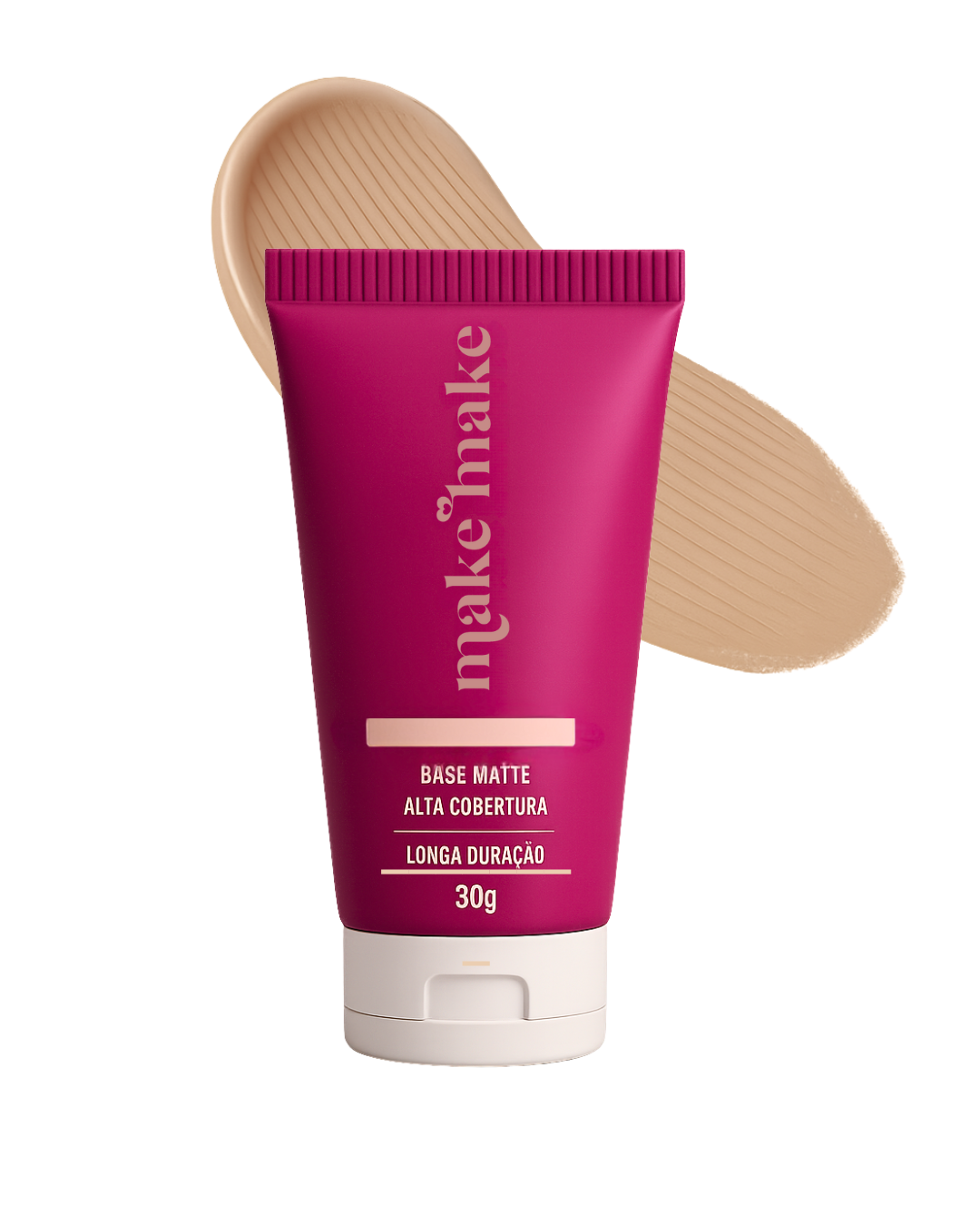 A Base Líquida da MakeMake entrega alta cobertura com efeito matte, cobrindo imperfeições com um acabamento natural e uniforme.