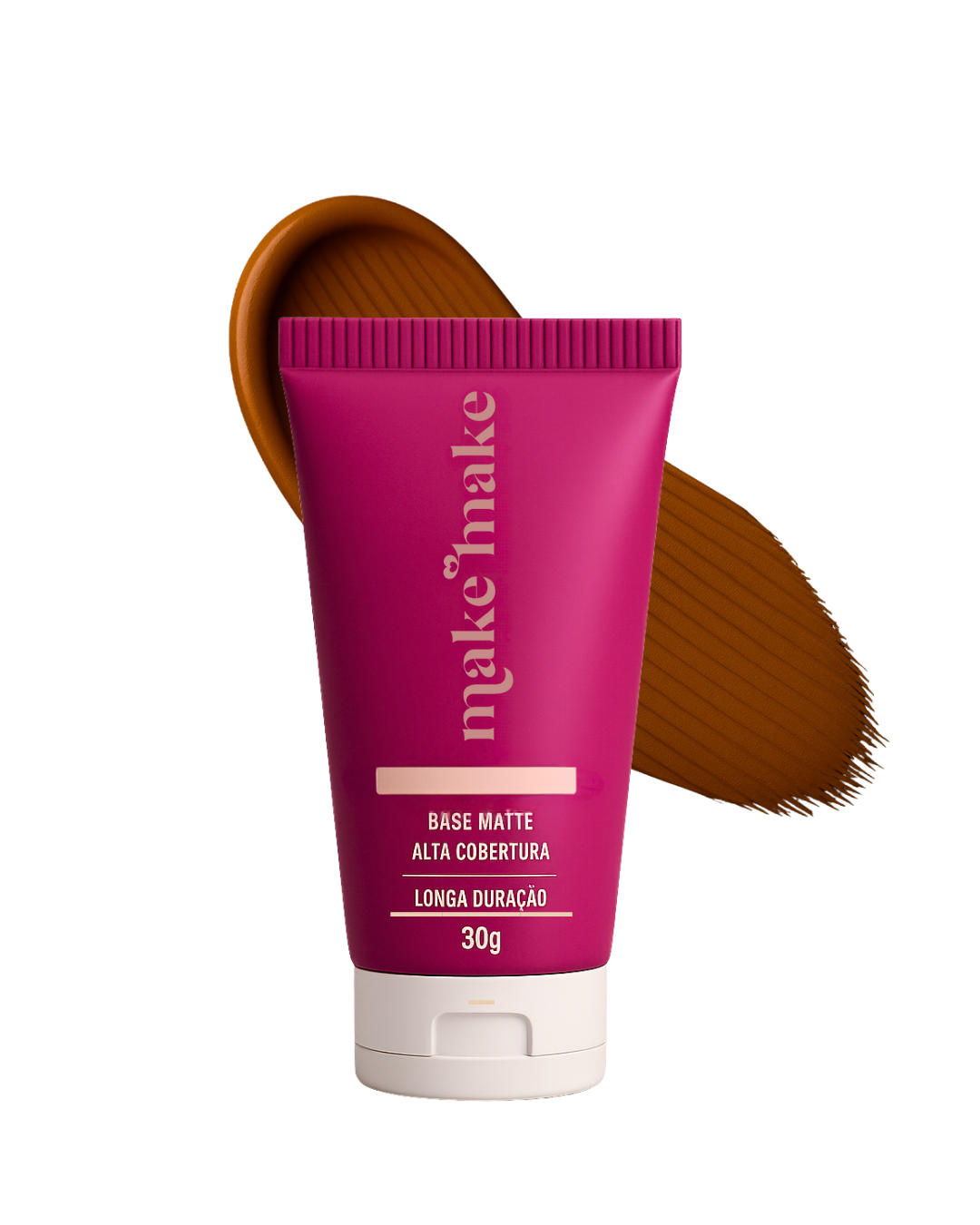 A Base Líquida da MakeMake entrega alta cobertura com efeito matte, cobrindo imperfeições com um acabamento natural e uniforme.